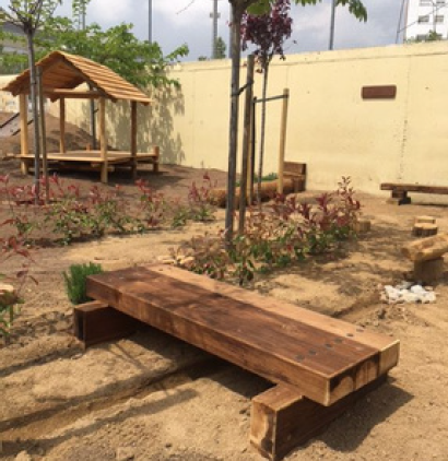 El curs 2018-2019 es va fer un projecte al’escola amb tots els alumnes de primària. Es van fer llistes de materials i estructures perconstruir un pati amb moltes possibilitats de joc.